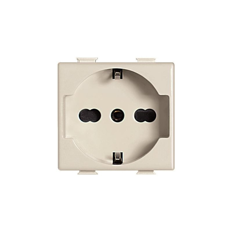 German standard socket and two-way 10/16A 250 Vac - For standard Italian plugs 2P 10A, 2P+E 10A, 2P+E 16A and German standard 2P+E - Colour ivory.