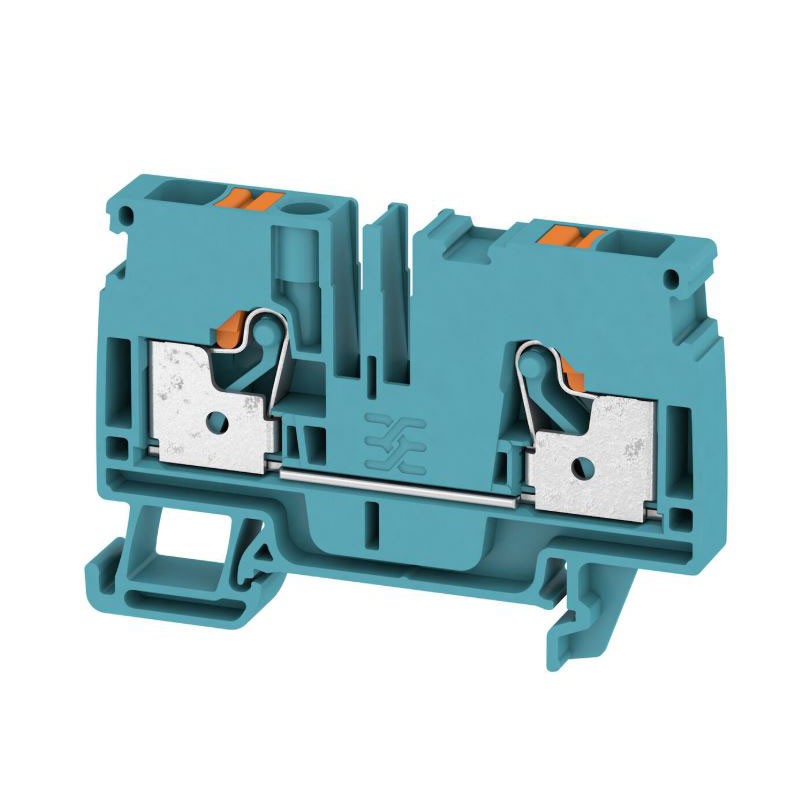The Weidmüller A2C 6 BL through terminal block uses Push-In technology, allowing fast and tool-free wiring for rigid and flexible conductors with ferrules. This reduces installation time and ensures a stable and durable contact even in the presence of vibrations.