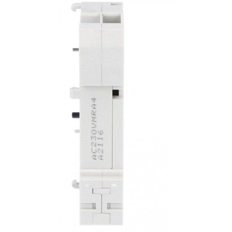 The coil occupies 1 DIN module and is mounted laterally on the switch, ensuring perfect mechanical and electrical integration.