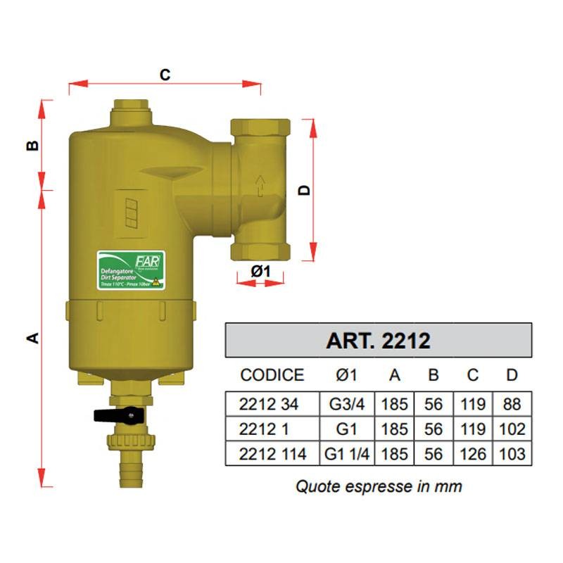 Far 2212 swivel Dirt Separator with magnets 1" for thermal systems 2212 1