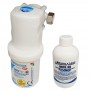 Mini metering pump for protecting boilers and plumbing fixtures by proportional dosing of a special anti-scale/anti-corrosive liquid formulation. Compact size but long charge tank for easy control of residual charge; bayonet connection for quick refill without shutting off system water.