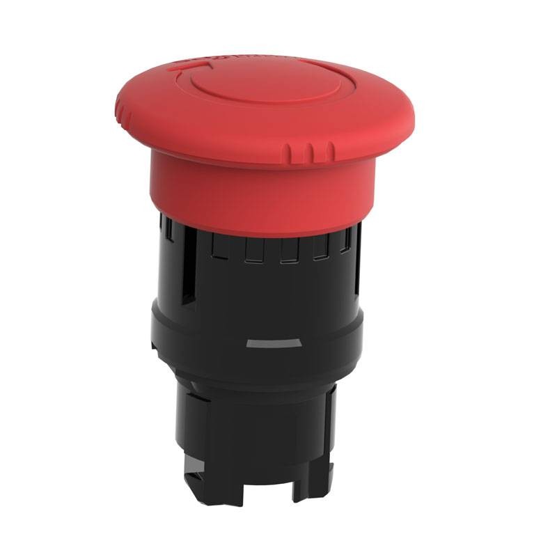 This emergency stop/shutdown button head, also called EMS (Emergency Machine Stop) and EMO (Emergency Off), provides an ergonomic interface for machine control.