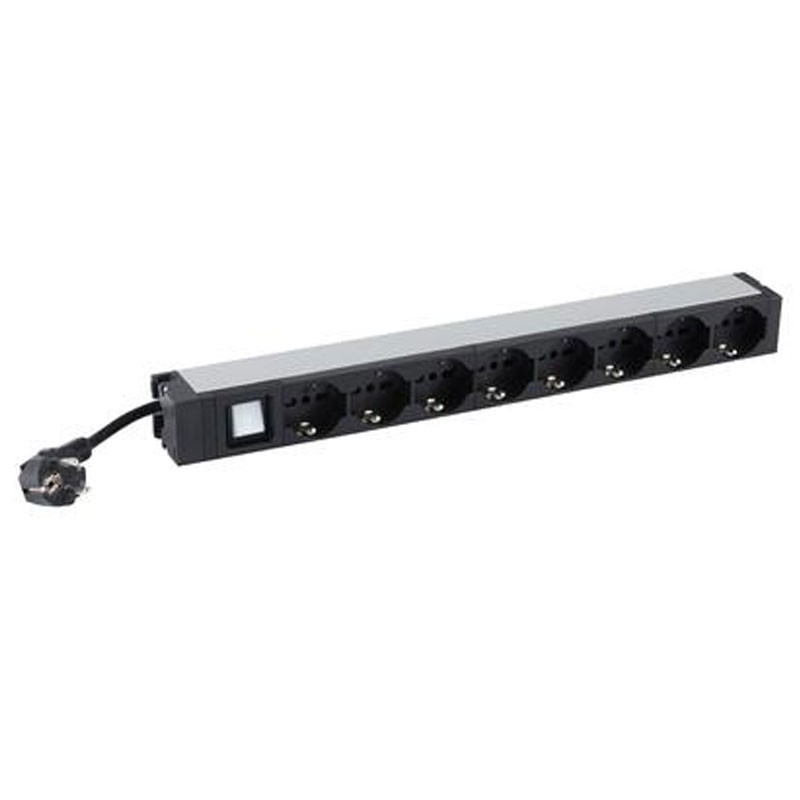 - Consists of 8 standard German two-pass sockets with lighted switch
