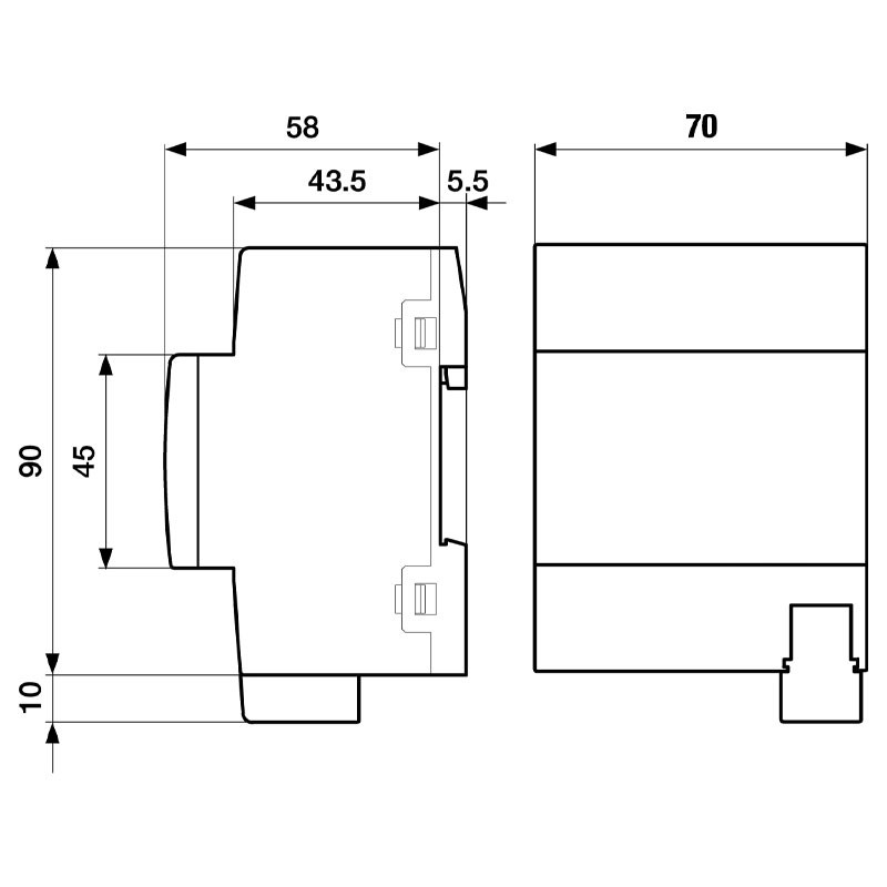With a footprint of only 4 modules (72 mm width), this ABB power supply is compatible with DIN rail installations according to the MDRC (Modular DIN Rail Components) standard. Its compact dimensions (90 mm height x 64.5 mm depth) and net weight of 0.26 kg make it easy to position even in small electrical panels.