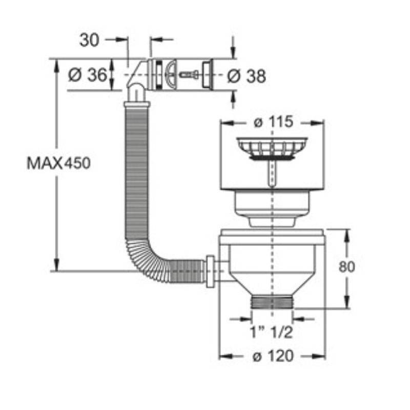 Bonomini kitchen sink drain without overflow 1 1/2 1950MG64B0