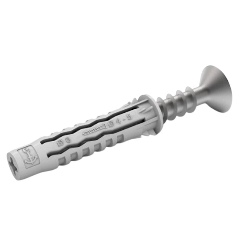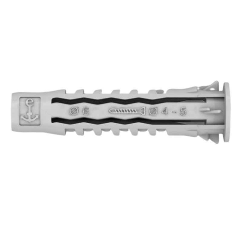 Top-quality Etelec TX6 (PA) 6.6 nylon plug with 4-way expansion with anti-rotation fins for lightweight fasteners in a case, for lightweight fastenings on most common building materials: concrete, natural stone, solid and perforated bricks, lightweight concrete hollow blocks, reinforced concrete, gypsum board.