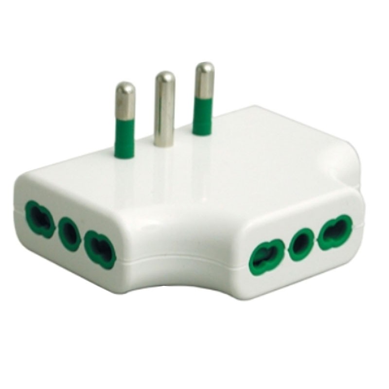 Fanton triple flat adapter, Italian plug 2P+E 16A, 3 Italian double sockets 2P+E 16A.
