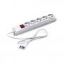 Rectangular multi-socket Master, with 5 outlets for Schuko and bivalent plugs. White thermoplastic body.