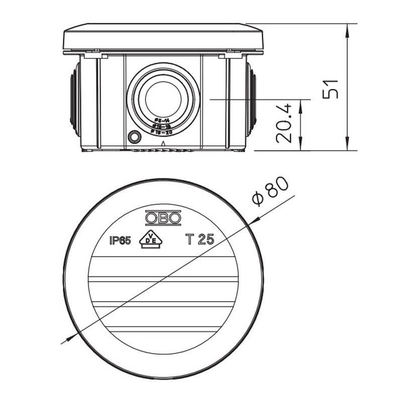 Obo T25 outdoor junction box IP66 diameter 80 mm gray 2007029