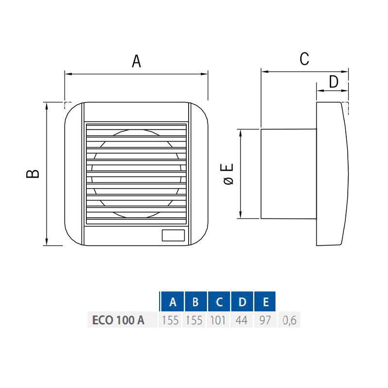 Air and odour extractor fan Elicent Serio ECO 100 A helical direct expulsion with adjustable electronic timer 3-25 minutes and electrically opening and closing fins for small and medium environments such as: bathrooms, toilets, closets, kitchens, cellars, laundries, etc..