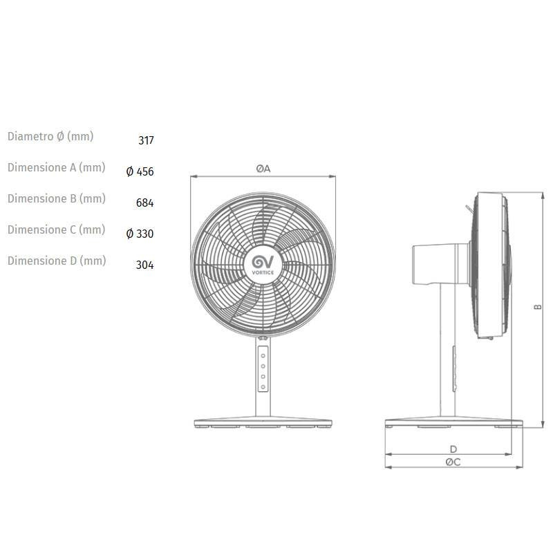 Technical specifications of the Vortice Gordon Evo fan