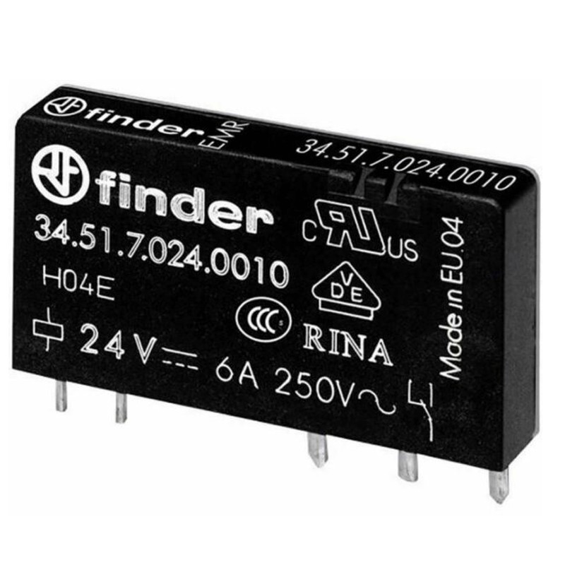 Finder electromechanical relay type 34.51 for printed circuit board, with the following characteristics: