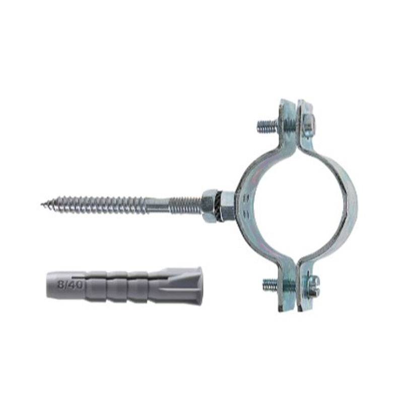 Fischer CPS-V 4 pipe collar complete with double-threaded screw and SX Plus 12 dowel. Ideal for plumbing and thermal systems in civil and industrial areas. Robust and reliable solution for wall fixing of metal pipes, with the following features: