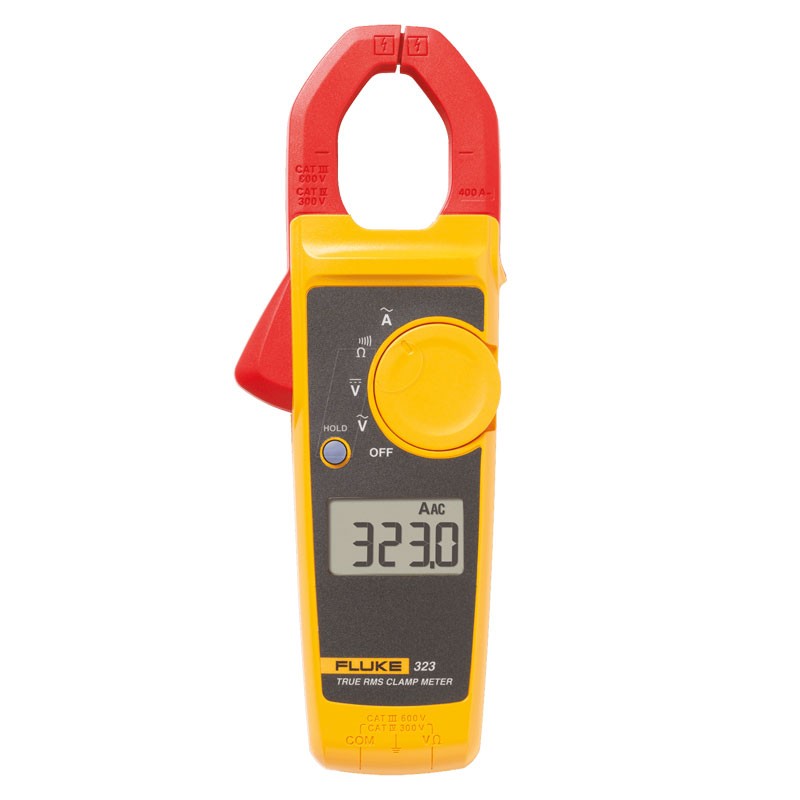 Fluke 323 TRMS 600V clamp meter, for AC/DC voltage measurements, 400A AC current measurement, True RMS AC current and voltage for accurate measurements of non-linear signals, Resistance measurement up to 4k with continuity detection.