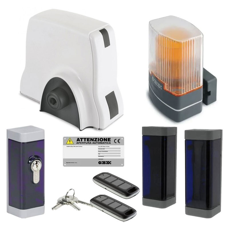 Gibidi SL544 irreversible electromechanical sliding gate kit for small and medium-sized sliding gates (up to 500 kg). Suitable for residential use, Kit consists of: