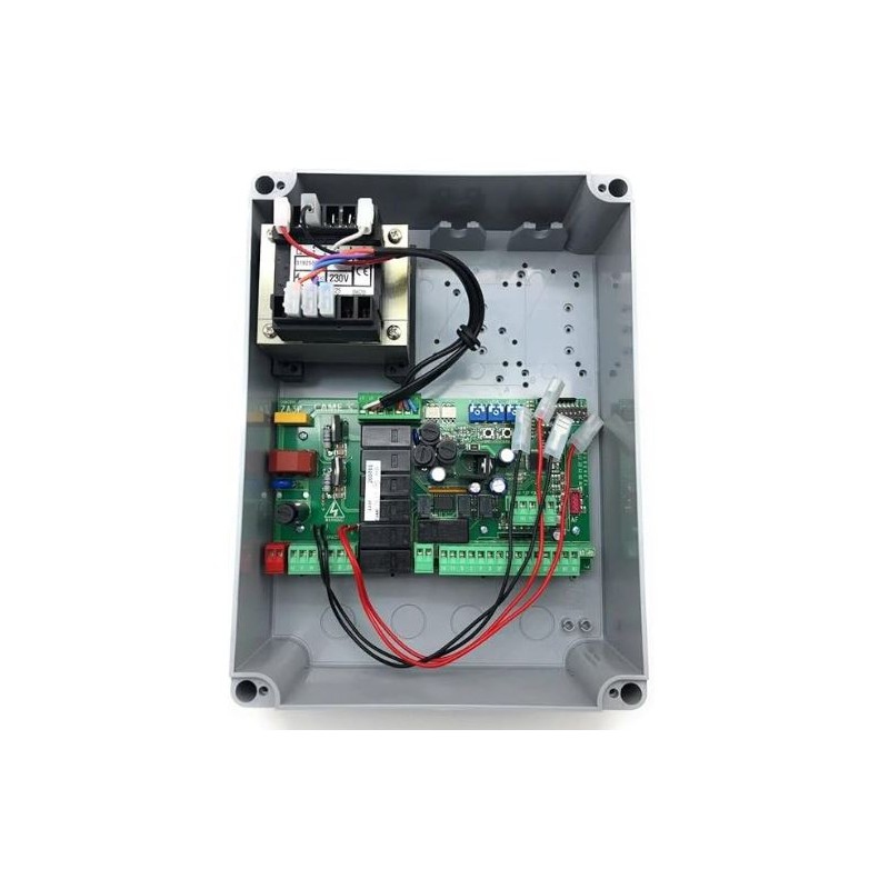1 piece 230V control panel with speed adjustment and limit switch management function (002ZA3P): Came control panel for two-leaf swing gates, 230V power supply, with graphic display card for programming and signalling and self-diagnosis of the safety devices, with limit switch management and slowdown speed adjustment. This article is compatible with all Came motors (ATI-FAST-FERNI-FROG-KRONO). It replaces the old 002 ZA3N board.