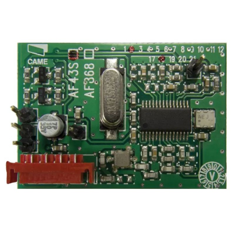 Plug-in radio frequency card 433.92MHz code 001AF43S: Radio frequency card that completes the receiver circuit implemented inside all CAME control boards and enables it to receive radio signals emitted by CAME transmitters.