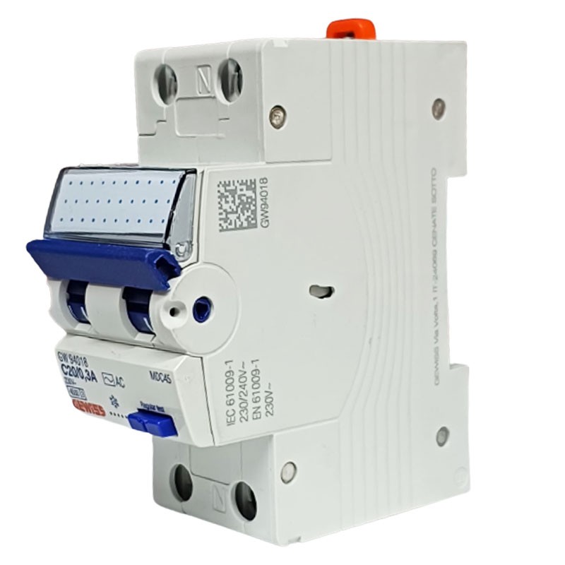 Gewiss differential circuit breaker 20A 1P+N 300MA AC 4.5KA 2 Modules with the following characteristics: