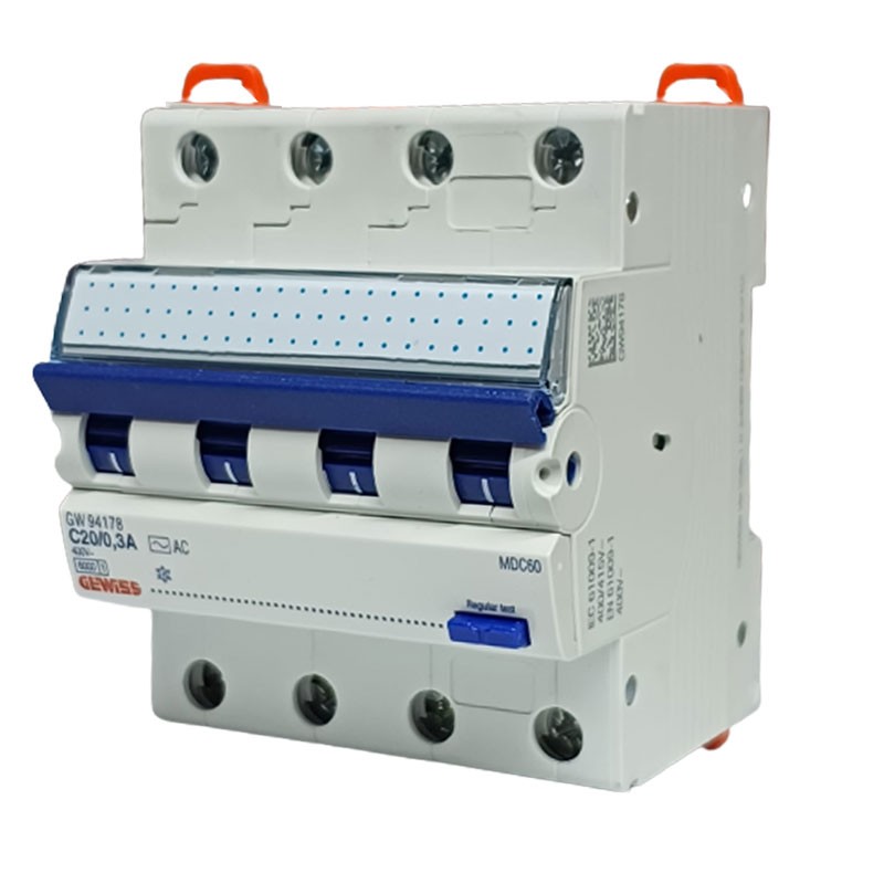 Gewiss Residual Current Circuit Breaker 20A 4P 300MA AC 6KA 4 Modules GW94178