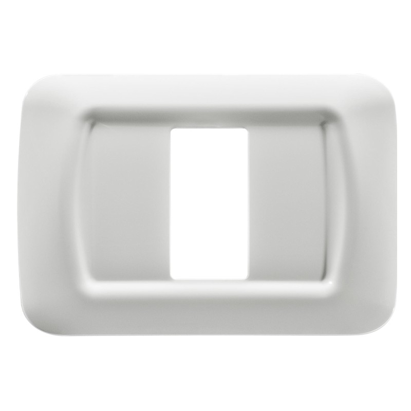 Top plate Gewiss System 1 place, colour white cloud. To be applied on frame GW24201.