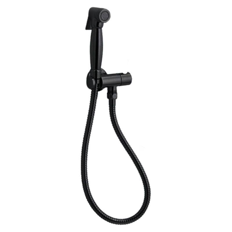 Mc Rubinetterie 1-jet round toilet brush set with shut off hand shower, brass faucet and 120 cm double crimped hose. Colour: matte black