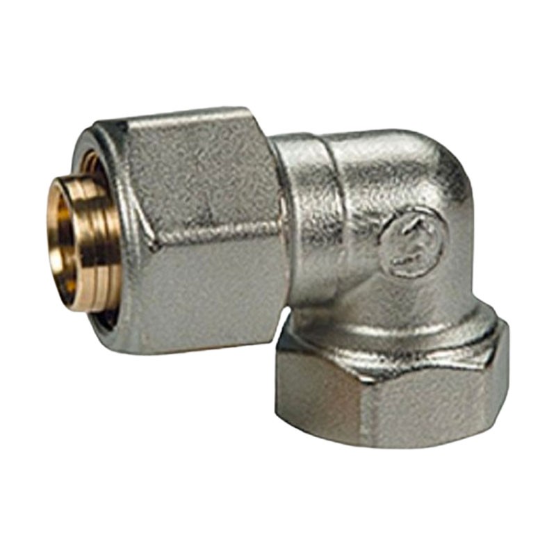 Giacomini 90-degree elbow fitting for plastic or multilayer pipes, provides a secure and durable connection for high-efficiency plumbing systems, with the following features: