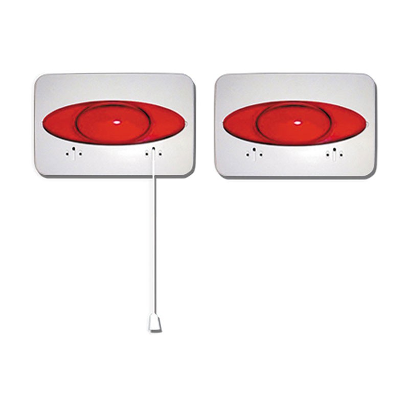 - Local indoor terminal: module with momentary closing call rod, battery and alarm signalling lamp.