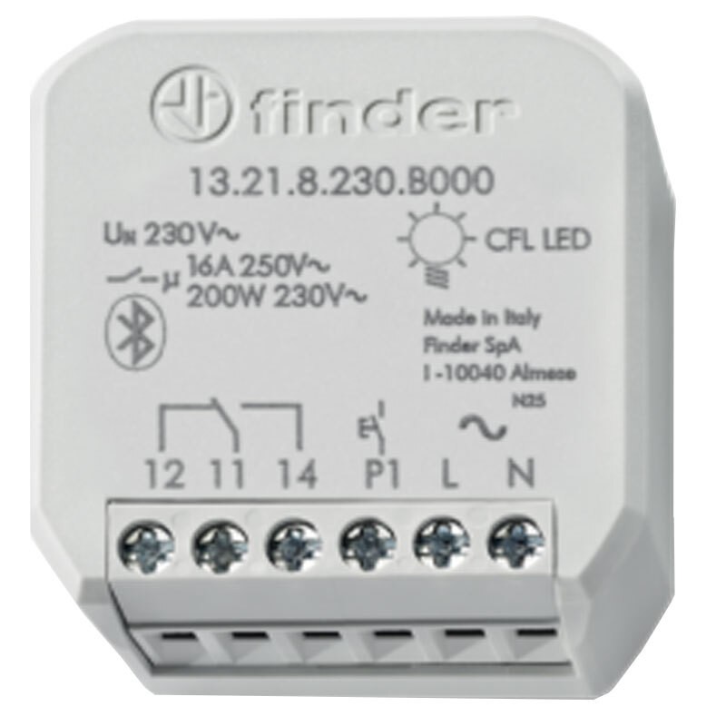 Finder Yesly 16A 250V multifunction relay is a device that can be integrated into the Finder YESLY smart home system. It features a 16A dry contact, boasts the same functions as the 13.22, and allows for push-button connection on both phase and neutral.