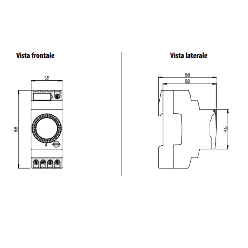 Electromechanical time switch in 2 DIN modules with jumper dial and daily programming.