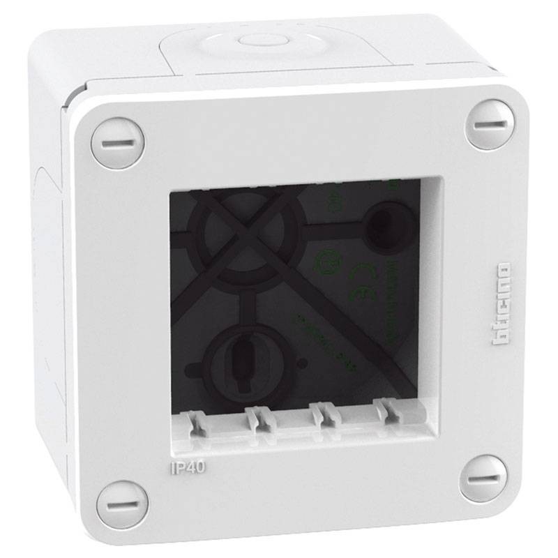 Bticino MatixGO 2-module hydrobox box, IP40 degree of protection, white color,compatible with MatixGO series inserts.