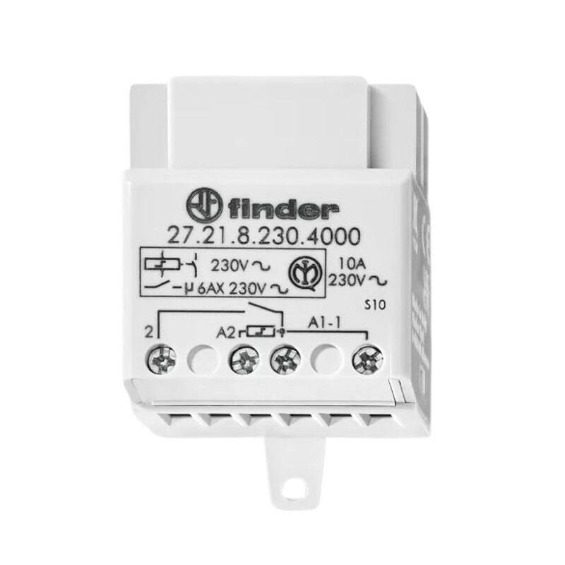 Finder EVO impulse switch relay 272182304000, 230V AC, 10A, 1NO, with coil power limiter. Controllable by 15 light buttons without adapter.