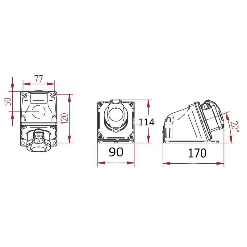 Fanton ARGO industrial wall outlet 3P+E 32A 400V IP67 red 71327