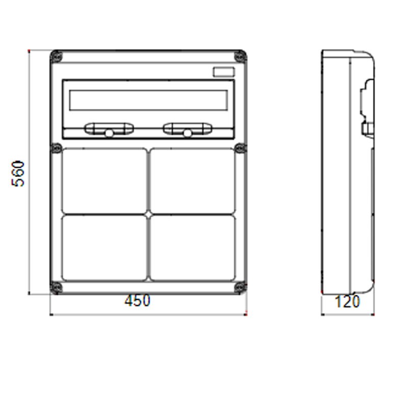 - Sockets housed: 4 IB horizontal 16/32 A CBF IP44