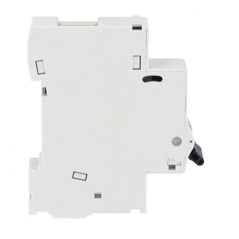 The device is mounted on the side of the breaker and occupies 1 DIN module, ensuring compact integration in the distribution board.