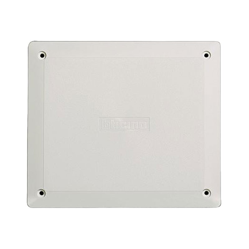 Bticino replacement cover for flush-mounting boxes 16208, in shockproof resin, with fixing screws, surface can be painted.