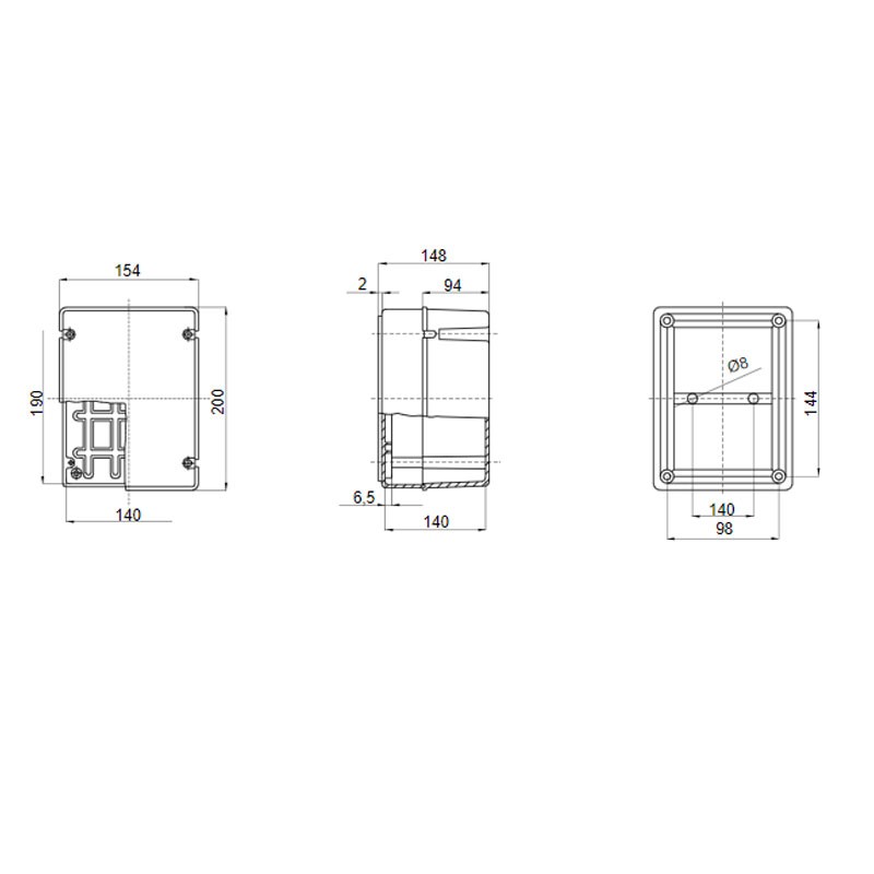 - Internal dimensions BxHxP (mm): 190x140x140