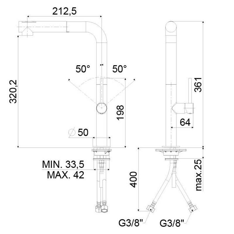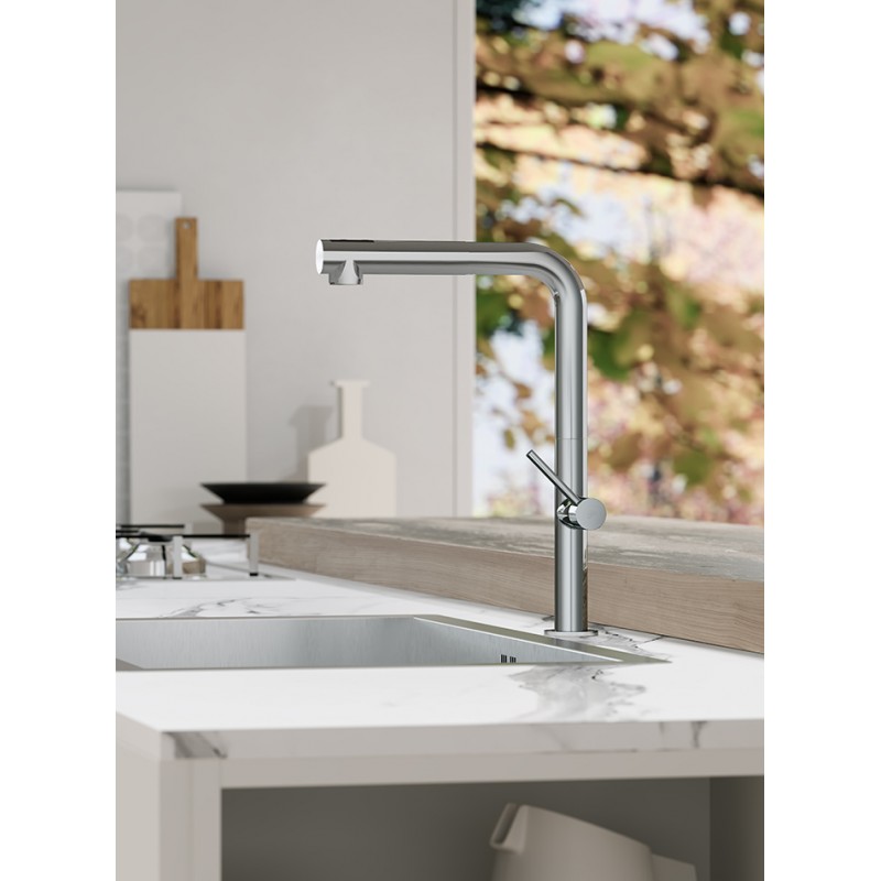 Paffoni Chef kitchen tap with 2-spray pull-out chromed hand shower with the following features: