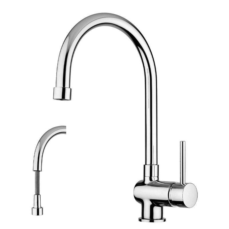 Paffoni Stick kitchen tap with pull-out hand shower, chrome swivel spout with the following features: