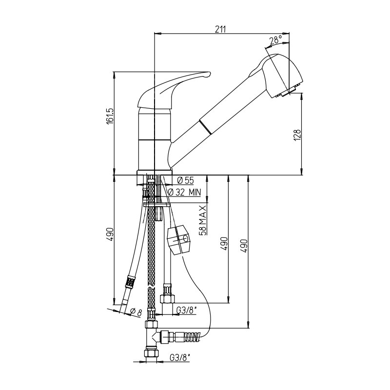 Total hose length of the pull-out hand shower: 120 centimetres.
