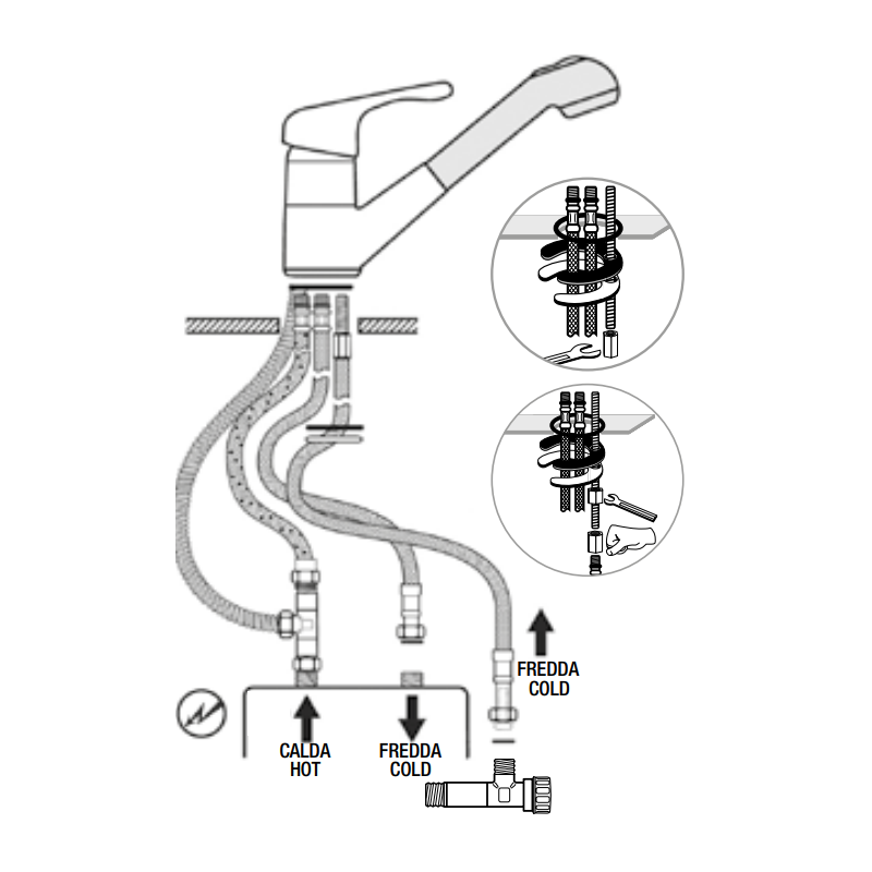 Paffoni kitchen tap with hand shower without waste RIN295CR-MET