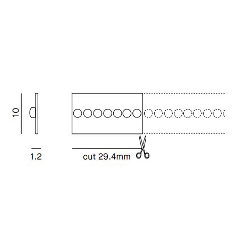 IP20 flexible LED strip. Monochrome LEDs mounted on flexible white dimmable 24Vdc circuit with 3M double-sided tape on the back. Length 5000mm, cuttable every 29.4mm. CRI90, 238 LEDs/m, 120° light beam for uniform, uninterrupted result. Vertical curvature, min. radius 60mm. Suggested installation on aluminum profiles, to be ordered separately. Power supply and control unit not included.