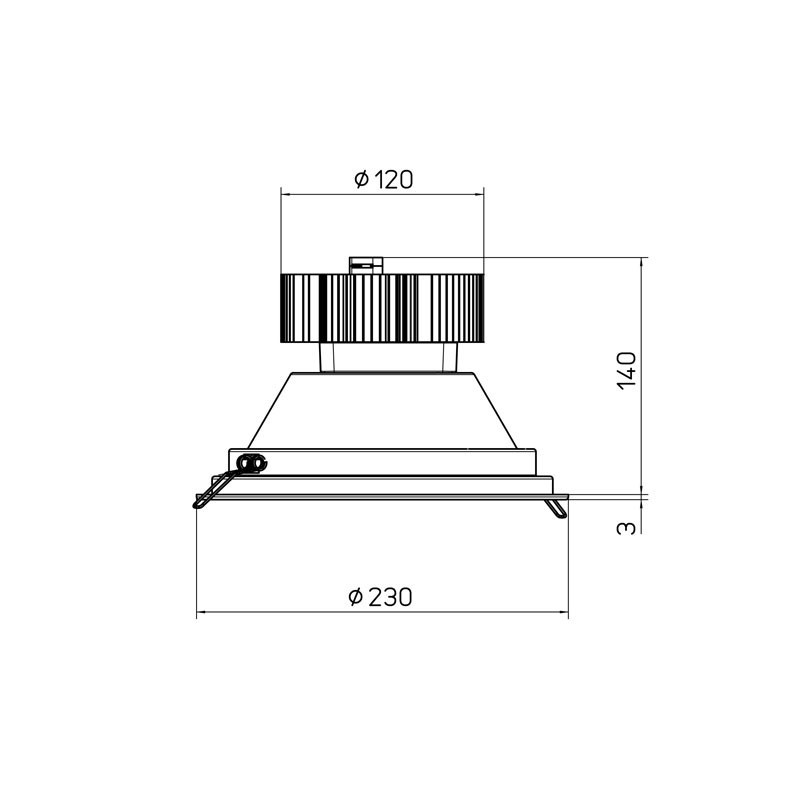With a diameter of 230 mm and recessed installation, this spotlight fits easily into a variety of environments. The minimalist design ensures harmonious integration into any space.