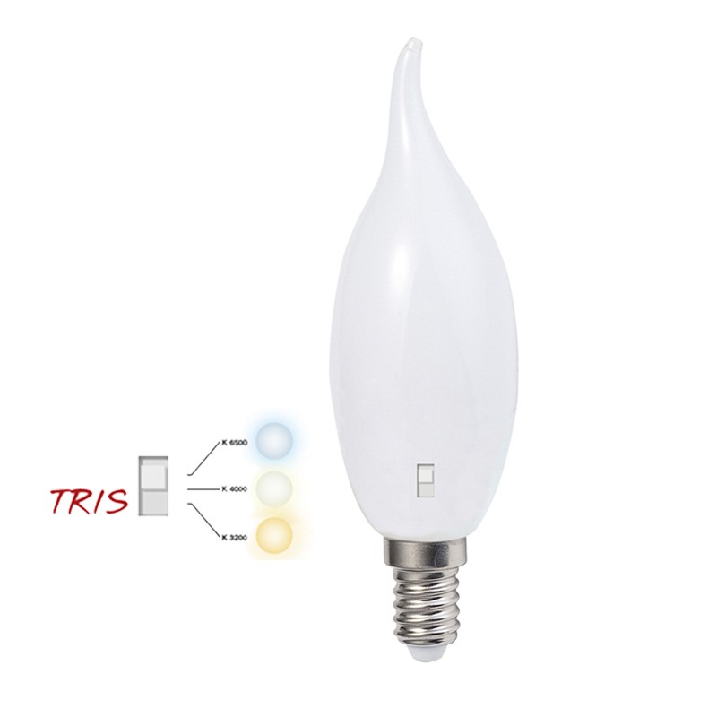 LED Flame Bulb Stone 6,5W attack E14 TRILED 3/4/6K with a simple button on the bulb you can choose the Warm, Natural or Cold coloration of the light.