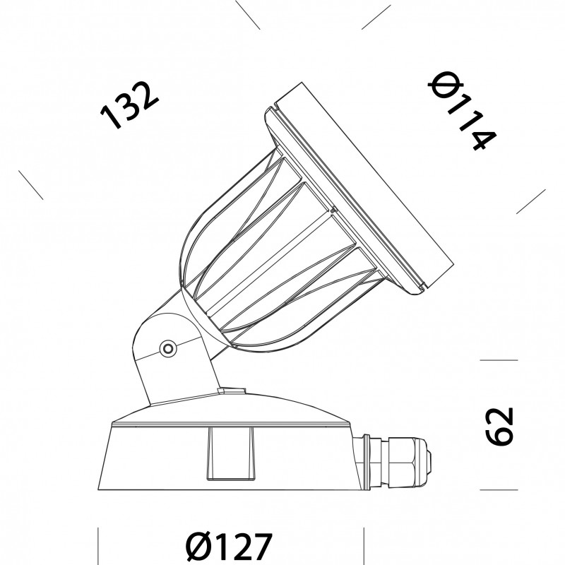 The spotlight is ENEC certified and conforms to EN60598-1, with IP65 protection against dust and water jets and IK08 impact resistance. It is suitable for installation on normally flammable surfaces and has a 3/8 cable gland.