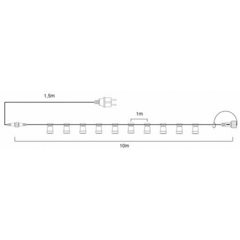 The Wimex catenary with 10 E27 socket lampholders is designed to offer a versatile and elegant solution for lighting outdoor spaces. With a total length of 11.5 meters and a sturdy rubber design, it is ideal for decorations, events and outdoor environments, providing efficiency and safety: