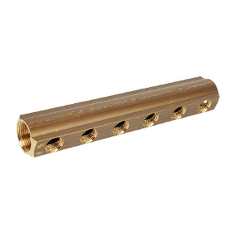 Giacomini brass distribution manifold with female threaded main and branch connections with the following features: