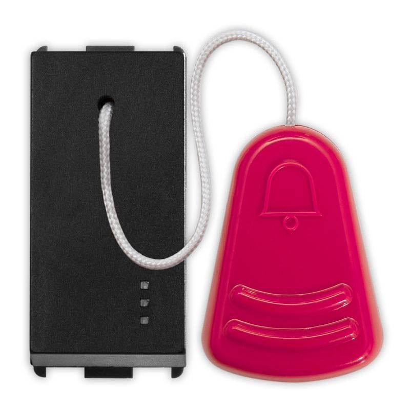 It is usually installed in bathrooms, the button works if the lanyard is pulled. To be connected to a buzzer or chime.