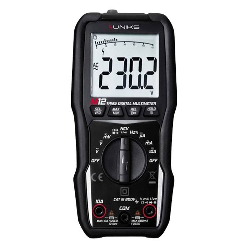 The M12 multimeter is a compact, professional digital instrument designed to offer advanced measurement performance in a portable, rugged, and easy-to-use format. Designed for electricians, installers, maintenance workers, and technicians in the electronics and electrical engineering industries, it ensures reliability and accuracy in even the most demanding applications.