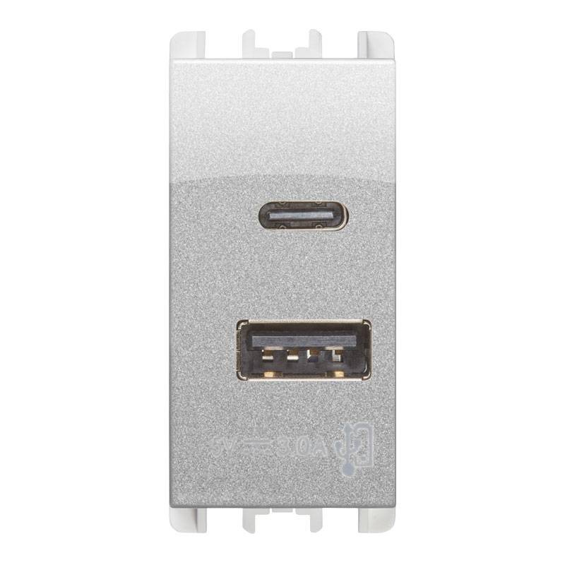 Simon Urmet Nea Power Unit socket with 2 front USB outputs, (Type A + Type C) for electronic equipment 5V 3.0A, 1 module, Aluminum Color.