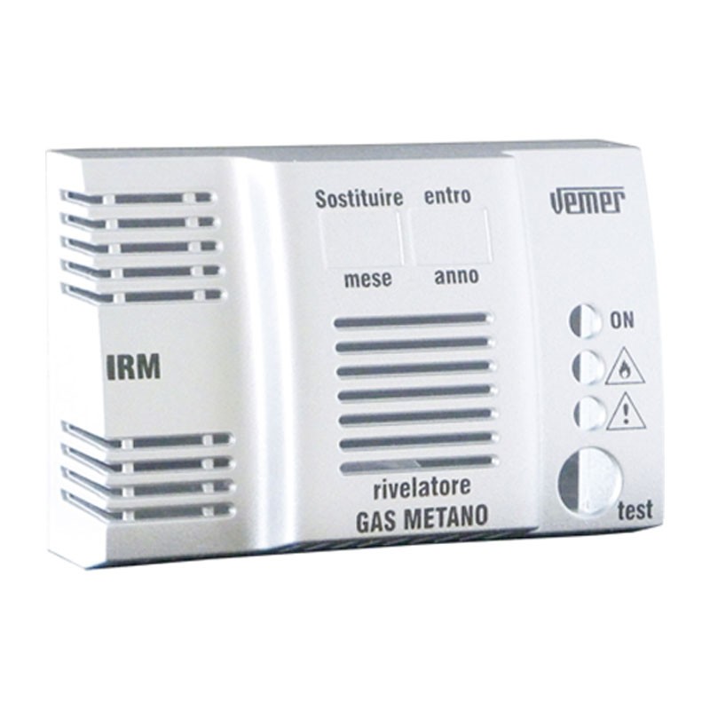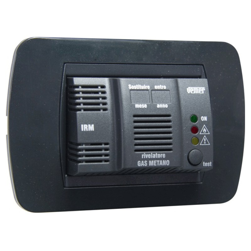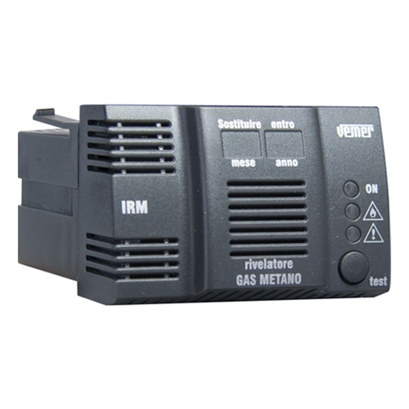 The Vemer VE294500 IRM natural gas detector is a recessed device designed to ensure the safety of domestic and commercial environments. Compatible with 3-module flush-mounted boxes, it features a relay to control a solenoid valve or other devices in the event of an alarm, reliably detecting methane gas leaks: